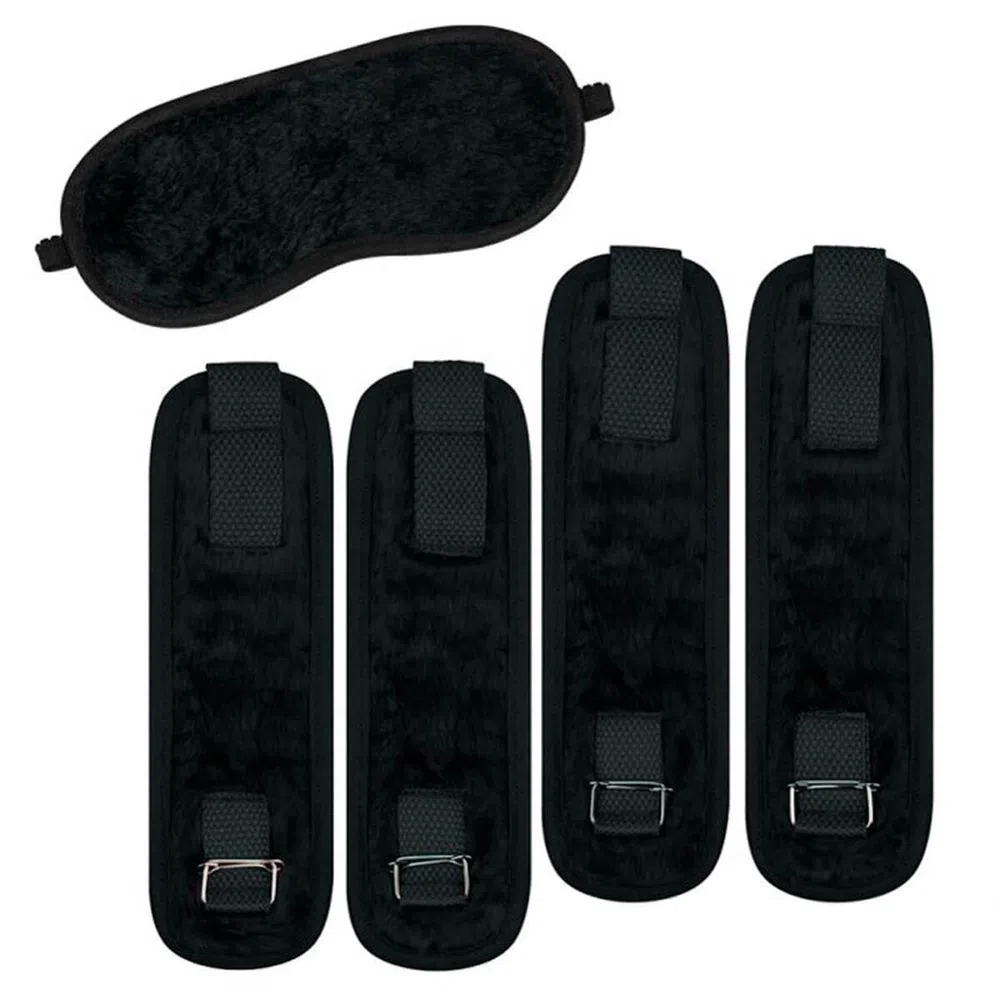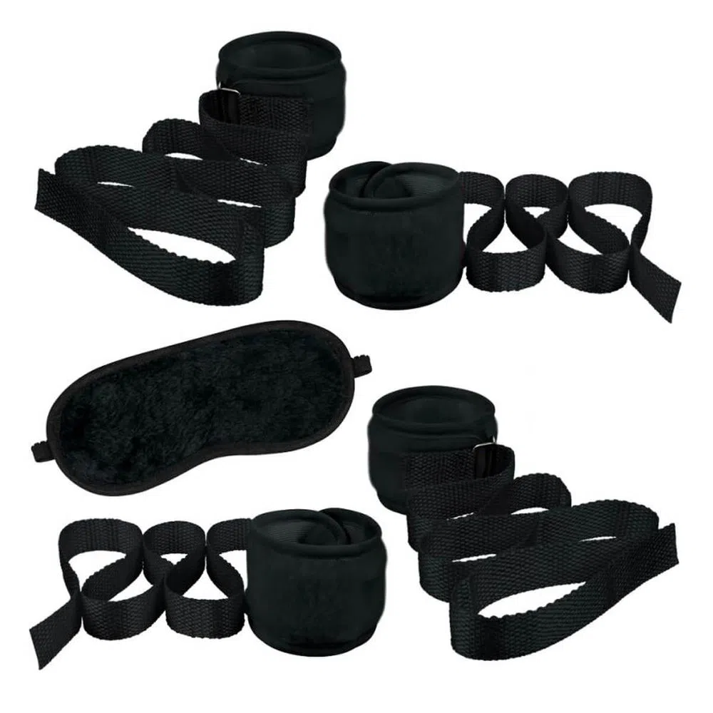 Kit Bondage com algema, tornozeleira e venda em pelúcia